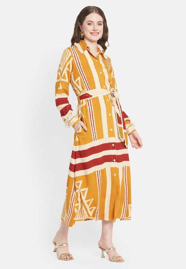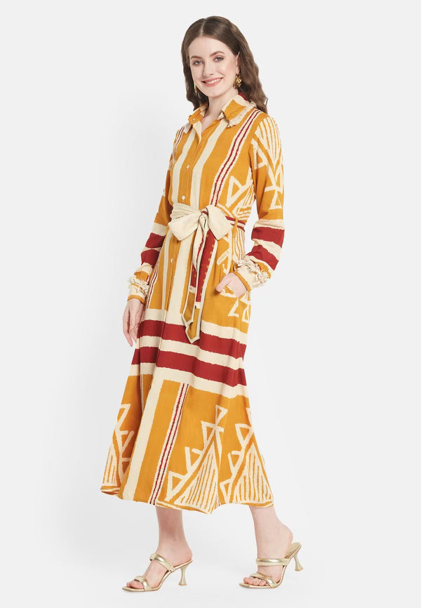 The Ember Soleil Shirt Dress, is more than just a piece of clothing; it's a celebration of individuality and adaptability. Suitable for both casual and formal events, it represents the modern woman's desire for fashion that's both striking and practical, making it a must-have in every wardrobe.