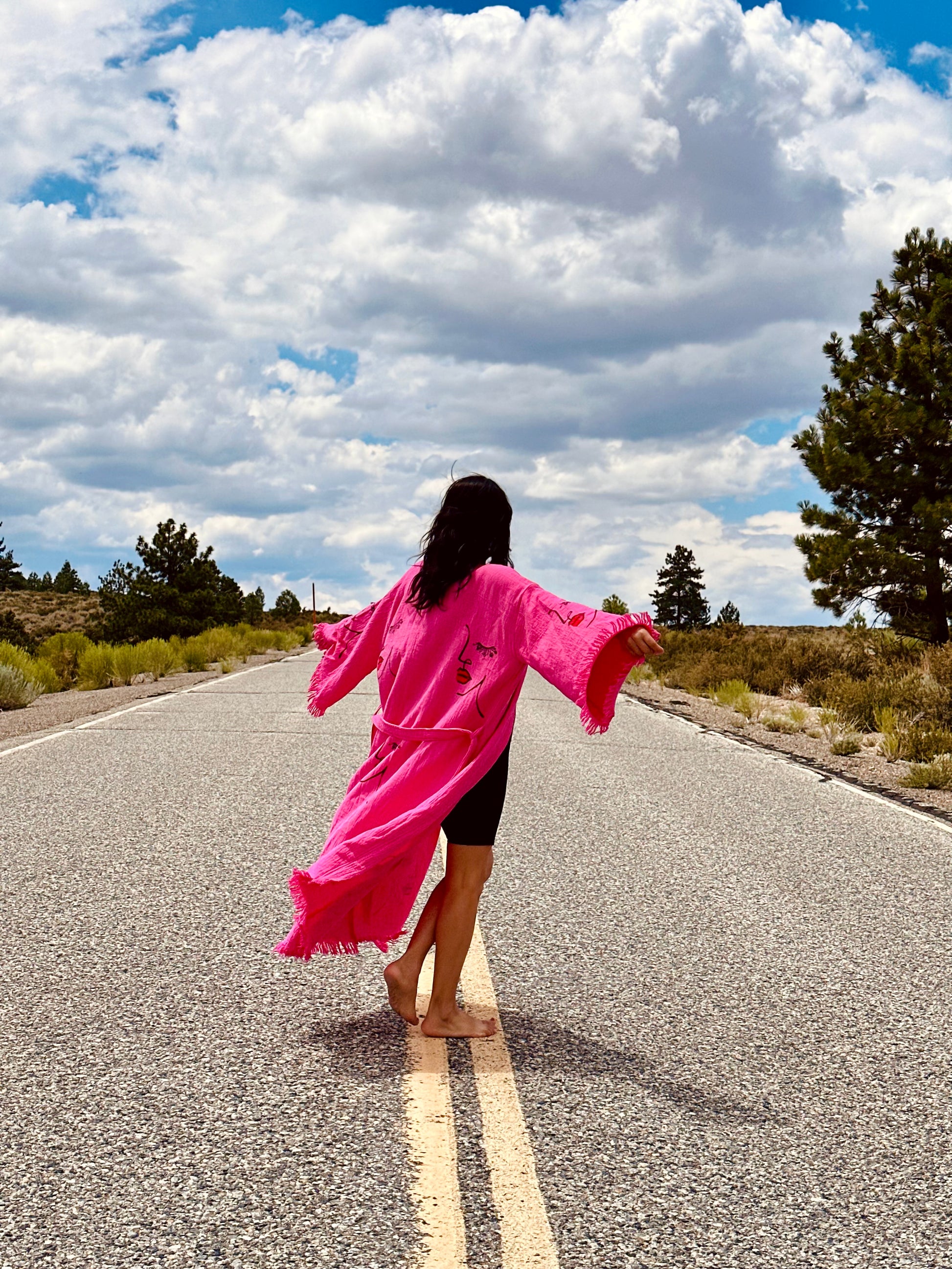 Its softness deepens with every wash, while its prewashed finish ensures minimal shrinkage and a perfectly relaxed feel from the start. Each robe is wood-printed by hand, adding individuality to every piece.